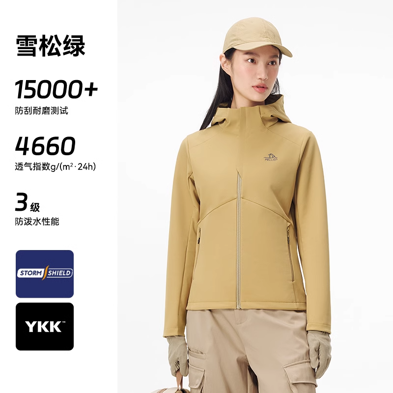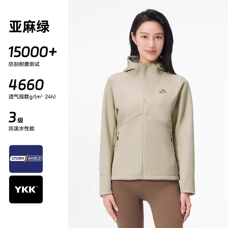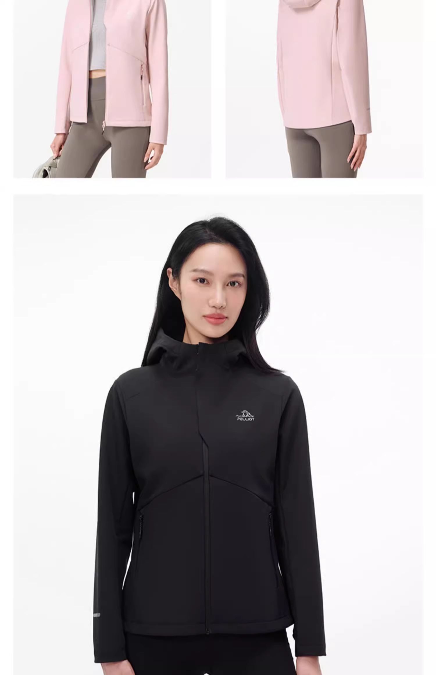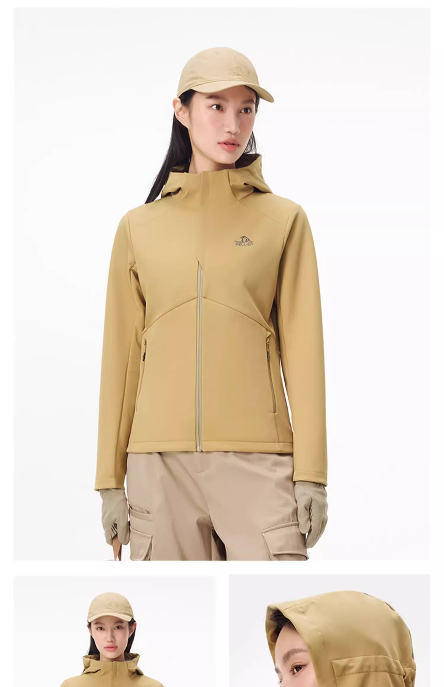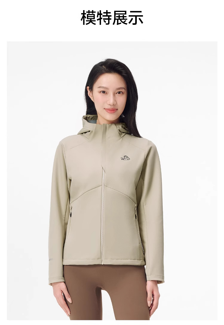 伯希和户外加绒连帽软壳衣女新款防风拒水轻量保暖高弹无拘束外套124306144