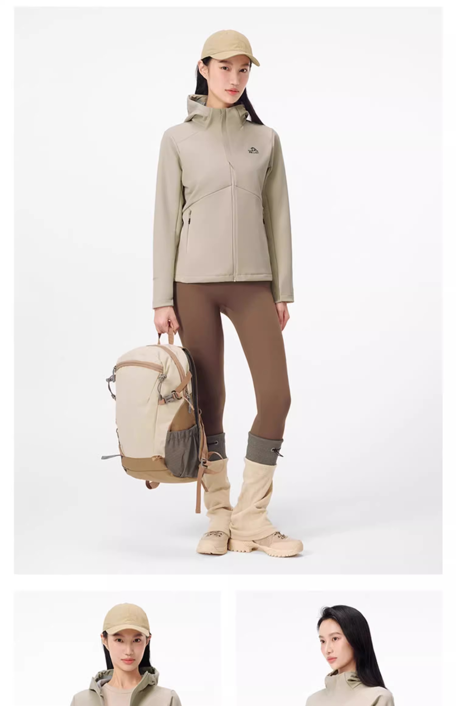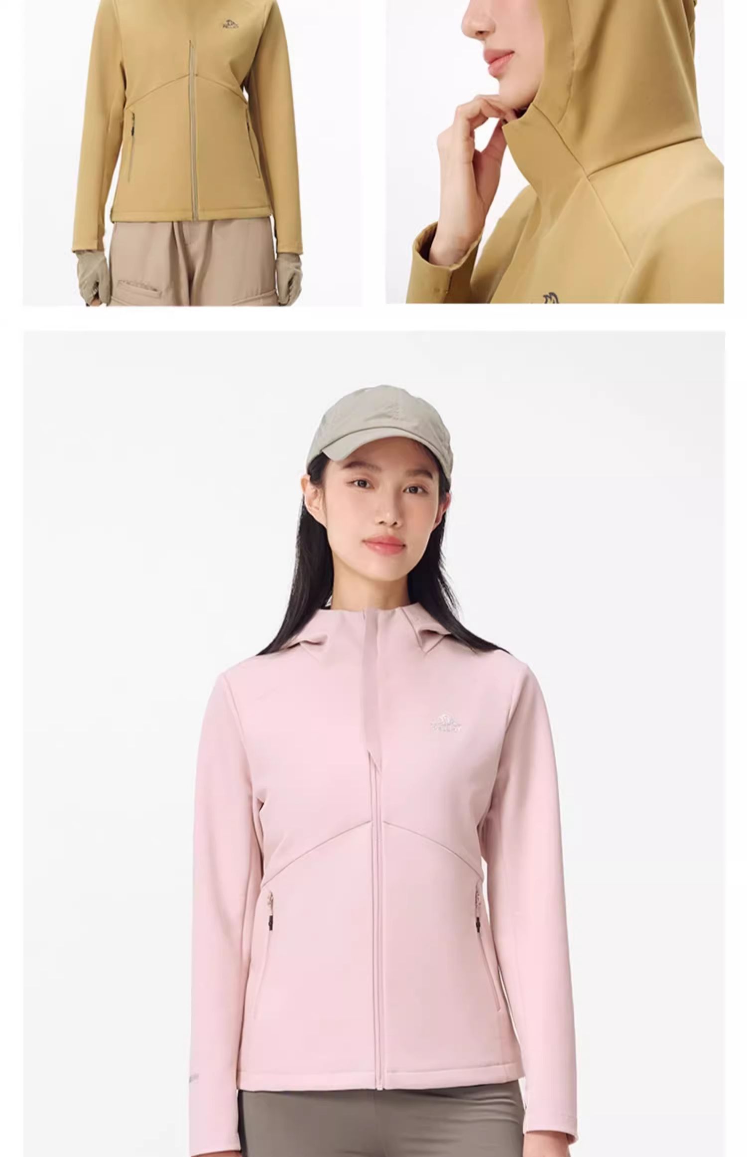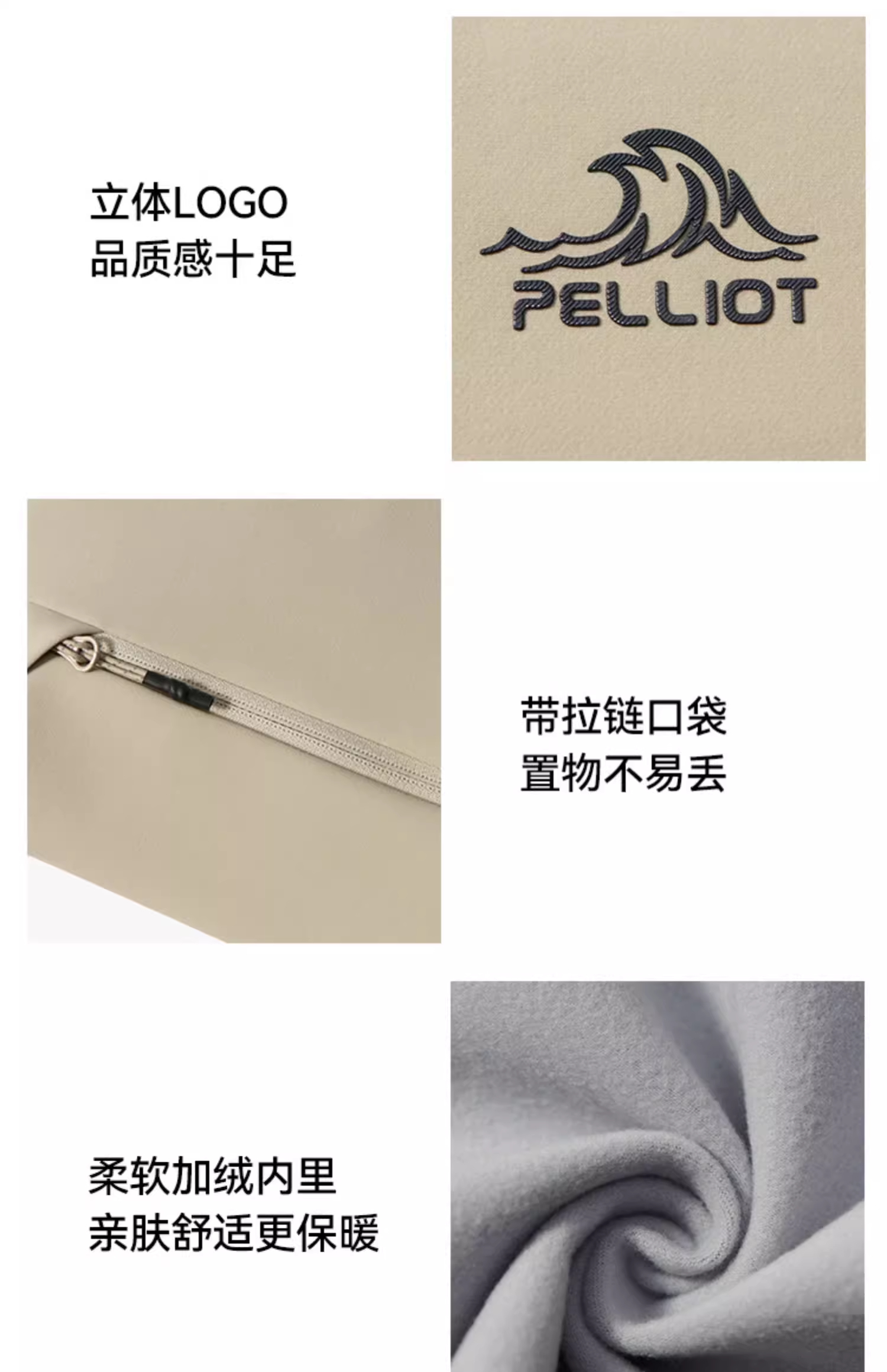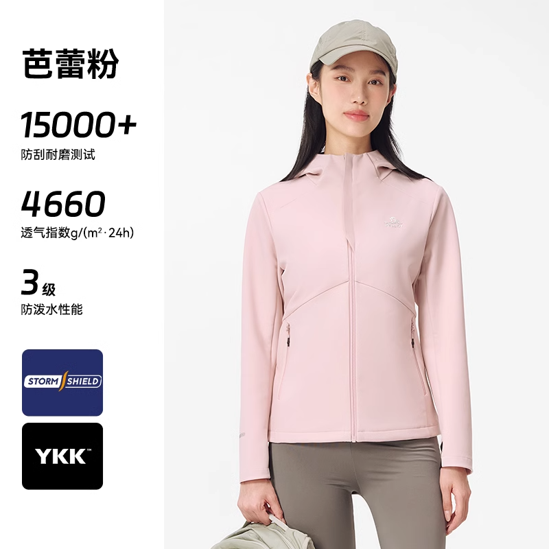 伯希和户外加绒连帽软壳衣女新款防风拒水轻量保暖高弹无拘束外套124306144