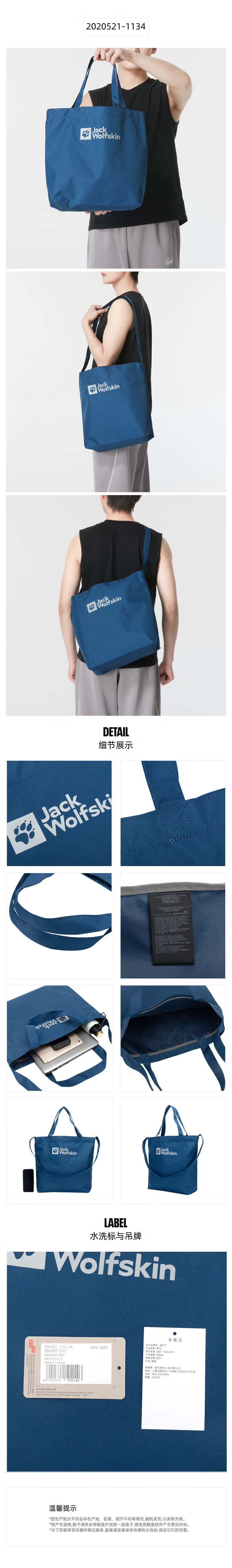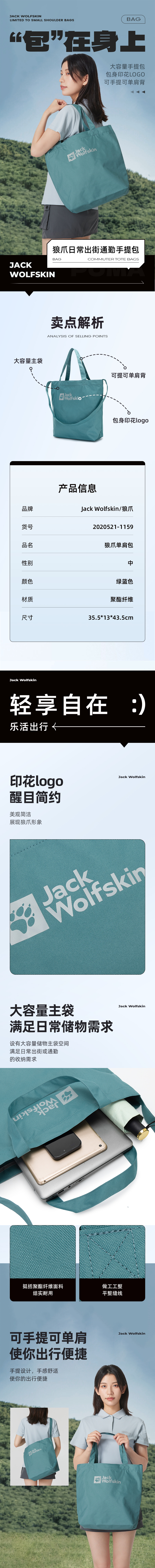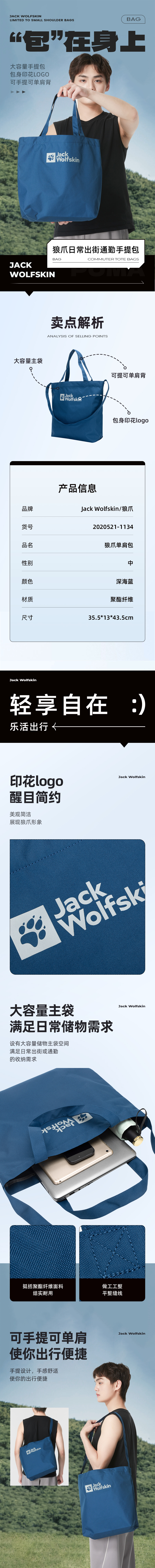 jackWolfskin狼爪男包女包 2024新款户外大容量运动包时尚休闲单肩包手提包 2020521-1134